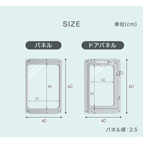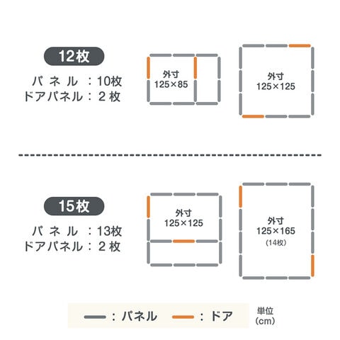 | セット内容 | 【12枚セット】クリアパネル10枚+ドアパネル2枚 【15枚セット】クリアパネル13枚+ドアパネル2枚 |