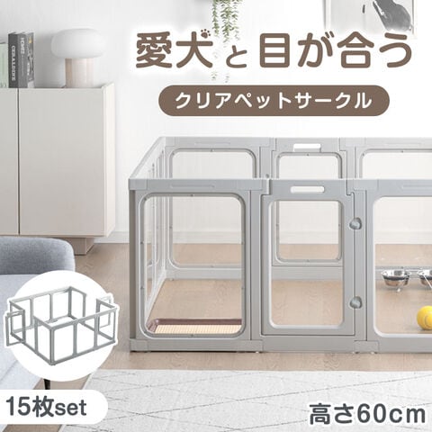 【即納】【新発売プライス】 愛犬と目が合う クリア ペットサークル 15枚セット 組み替え 2ドア 扉 半透明 ドッグサークル ペットケージ 小型犬 中型犬 滑り止め 室内 高さ 60cm 拡張 仕切り おしゃれ 72500016〔グレー〕