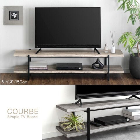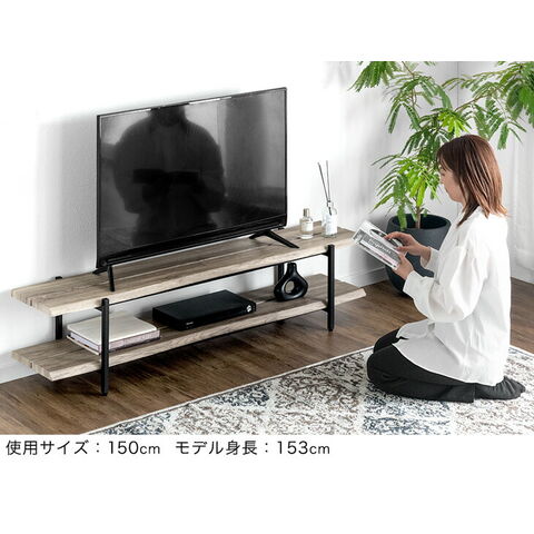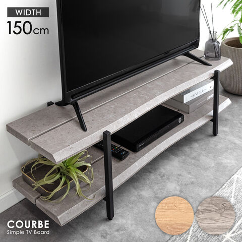 テレビ台 幅150cm 薄型 脚付き テレビボード テレビラック TVラック ローボード 32型 40型 42型 43型 スリム 省スペース 収納 木製 木目調 石目調 黒 スチール脚 おしゃれ 72600092〔ストーングレー〕