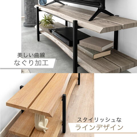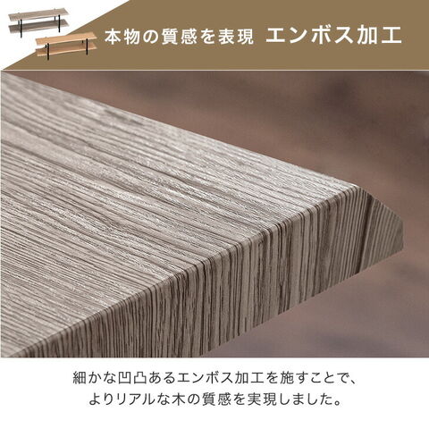 ・おしゃれな “なぐり加工”天板 ・幅120/150cm 選べる2サイズ ・天然木の質感を再現したエンボス加工 ・スリムな奥行33cm設計 ・サッと出し入れしやすいオープン収納 ・スタイリッシュなブラック脚 |