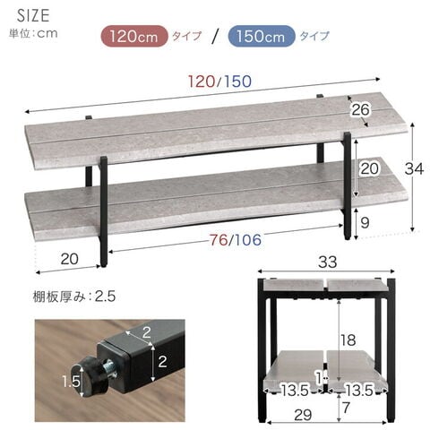 | サイズ | 外寸:幅120/150×奥行33×高さ34cm |