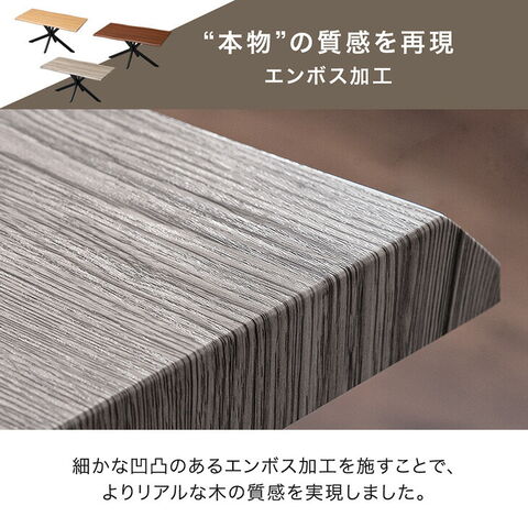・高級感と温もりを生む“なぐり加工”天板 ・スタイリッシュな脚部デザイン ・天然木の質感を再現したエンボス加工 |