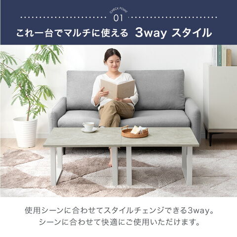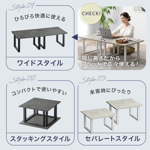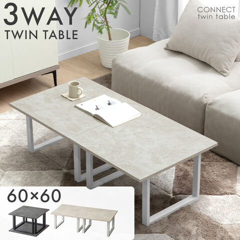 【即納】 3Way ツインテーブル 幅60 2台セット センターテーブル リビング ローテーブル ネストテーブル 机 座卓 小さめ コンパクト モルタル調 おしゃれ 北欧 72600091 〔モルタルホワイト〕