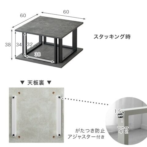 | サイズ | 【1台】 60×60×37cm 【スタッキング時】 60×60×38cm |