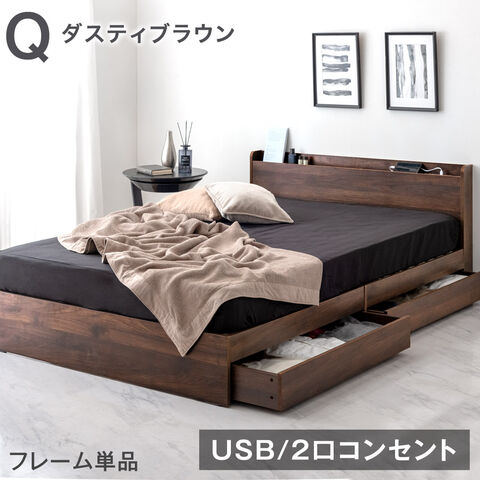 ベッド クイーン 収納ベッド クイーンベッド クイーン ベッドフレーム のみ 収納付き 引き出し付き USBポート 収納付きベッド 81200030 〔ダスティブラウン〕