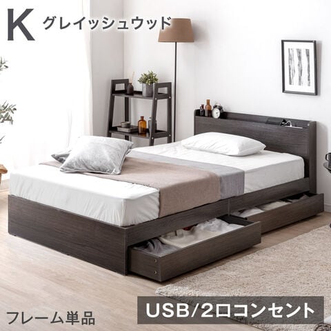 ベッド キング 収納ベッド キングベッド キングベッドフレーム のみ 収納付き 引き出し付き USBポート 収納付きベッド 81200031 〔グレイッシュウッド〕【予約】1月上旬※1/11までに出荷予定