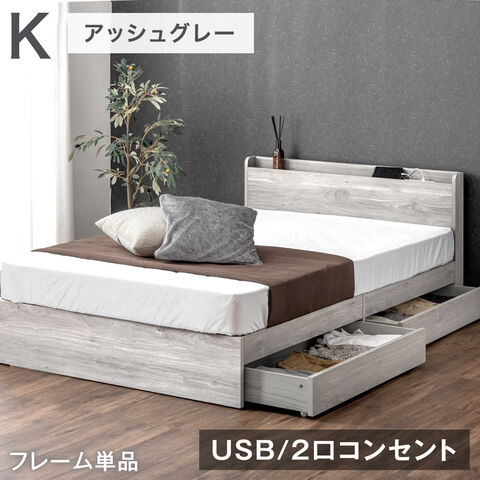 ベッド キング 収納ベッド キングベッド キングベッドフレーム のみ 収納付き 引き出し付き USBポート 収納付きベッド 81200031 〔アッシュグレー〕【予約】1月上旬※1/11までに出荷予定