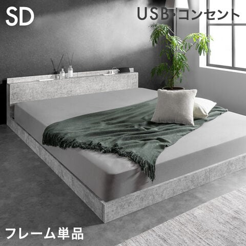 ローベッド すのこ セミダブル ベッド フレーム USB・コンセント&スマホスタンド付 宮棚 連結 ロータイプ コンセント 宮付き すのこベッド フロアベッド 連結ベッド 73400034〔ストーングレー〕【予約】6月上旬※6/10までに出荷予定
