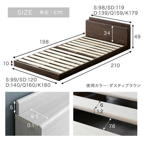 | 備考 | 【組立品】 【組立時間の目安】ダスティブラウン、アッシュグレー、ホワイトウォッシュ(全サイズ)ストーンブラック、ストーングレー(S/SD):約20〜30分 ストーンブラック、ストーングレー(D/Q/K):約60分) ※ベッドフレームのみの販売です。 ※破損の原因となりますので、直接すのこの上に乗るのはおやめください。 ※配送は全て宅配便(1人)での玄関渡しとなります。大型商品や重量商品、エレベーターの無い2階以上にお住まいのお客様は、玄関口までの搬入のお手伝いをお願いしております事をご了承ください。 ※2021年11月19日より、配送時の破損を防ぐため宮棚の仕様が組み立て式に変更になりました。 デザインは変更されておりませんので、予めご了承ください。 (ダスティブラウン、アッシュグレー、ホワイトウォッシュのみ) |