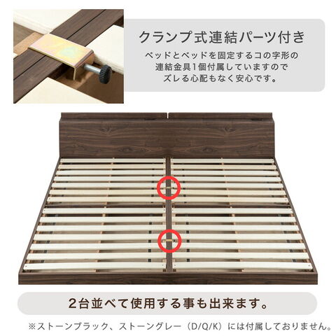 | 素材 | フレーム:プリント化粧繊維板 すのこ:LVL 連結パーツ:スチール ※ストーンブラック、ストーングレーのD/Q/Kサイズには付属していません |