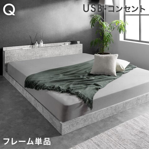 ローベッド すのこ クイーン ベッド フレーム USB・コンセント&スマホスタンド付 宮棚 連結 ロータイプ コンセント 宮付き すのこベッド フロアベッド 連結ベッド 73400036 73400143〔ストーングレー〕【予約】6月上旬※6/10までに出荷予定