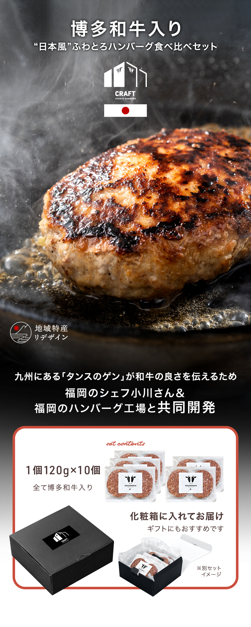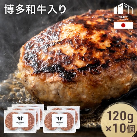 【お得な10個セット】 国産 博多和牛 入り ハンバーグ セット 120g 10個 1箱 CRAFT 冷凍 無添加 冷凍ハンバーグ 生 タネ 和牛 牛肉 肉 挽肉 国産牛 合挽 詰め合わせ 和風 美味しい お祝い ギフト 74010536