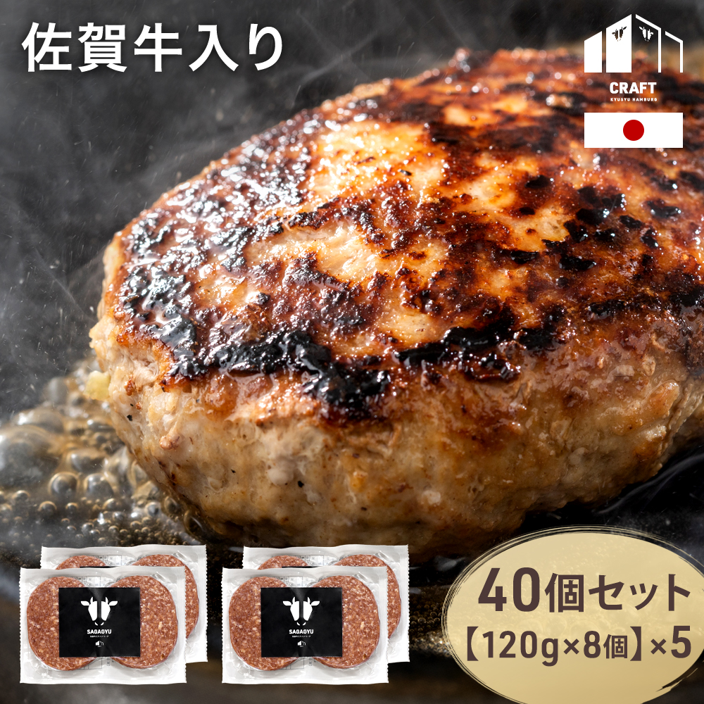 【お得な40個セット(8個入×5箱)】 国産 佐賀牛 入り ハンバーグ セット 120g 40個 5箱 CRAFT 冷凍 無添加 冷凍ハンバーグ 生 タネ 和牛 牛肉 肉 挽肉 国産牛 合挽 詰め合わせ 和風 美味しい お祝い ギフト 99901075