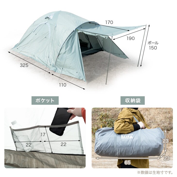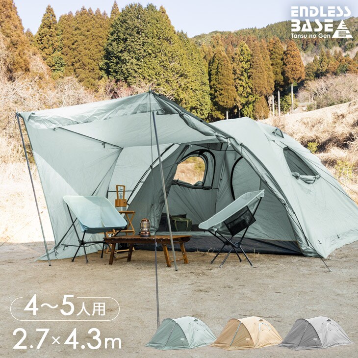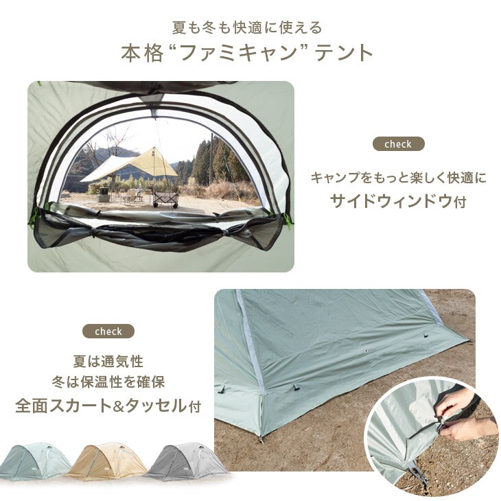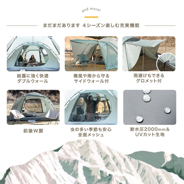 【即納】 【1年保証】キャノピーテント 全面スカート・サイドウィンドウ付 幅270cm 4~5人用 ファミリー サイドウォール キャノピーポール 付き UVカット 耐水 メッシュ テント キャンプ 74100022〔スモーキーグリーン〕