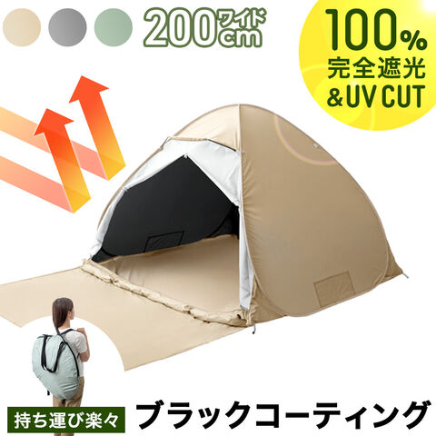 【即納】 完全遮光 ポップアップテント ブラックコーティング 背負えるケース サンシェード付 100% 遮光 UVカット 簡単 大きめ 2~4人用 フルクローズ 74100124〔エクルベージュ〕