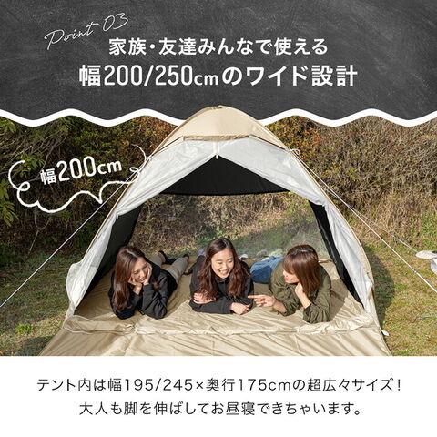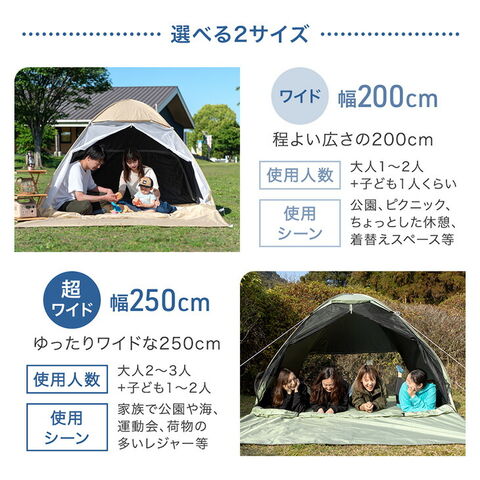 【即納】【新発売プライス】 完全遮光 ポップアップテント 幅250cm スーパー ブラックコーティング 背負えるケース サンシェード付 100% 遮光 UVカット 防水 簡単 4人用 コンパクト 74100140〔エクルベージュ〕
