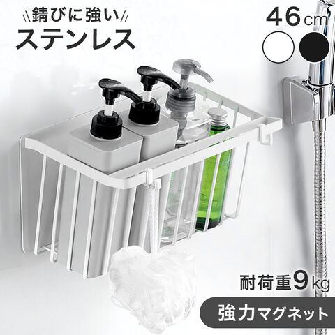 【新発売プライス】ステンレス バスラック 幅46cm マグネット収納 浴室 ランドリー バスルームラック バスケット かご お風呂収納 浴室収納 マグネット 磁石 ヌメリ防止 おしゃれ 74100127〔ホワイト〕【予約】12月23日より順次出荷予定