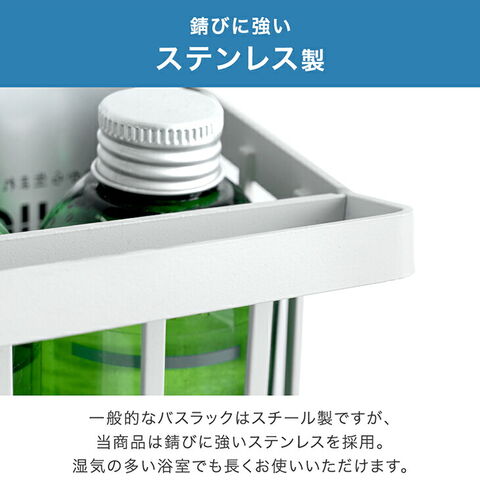 ステンレス バスラック 幅46cm マグネット収納 浴室 ランドリー バスルームラック バスケット かご お風呂収納 浴室収納 マグネット 磁石 ヌメリ防止 おしゃれ 74100127〔ホワイト〕【予約】5月下旬※5/31までに出荷予定