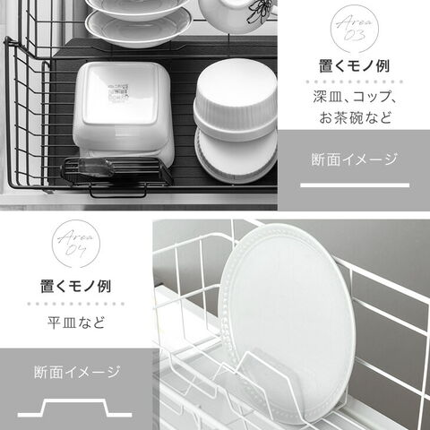 ・置くものに合わせてエリア分けOK ・シーンに合わせて使える伸縮式 ・水垢が目立ちにくいエンボス加工 ・高耐久で長く使えるSUS304ステンレス採用 |