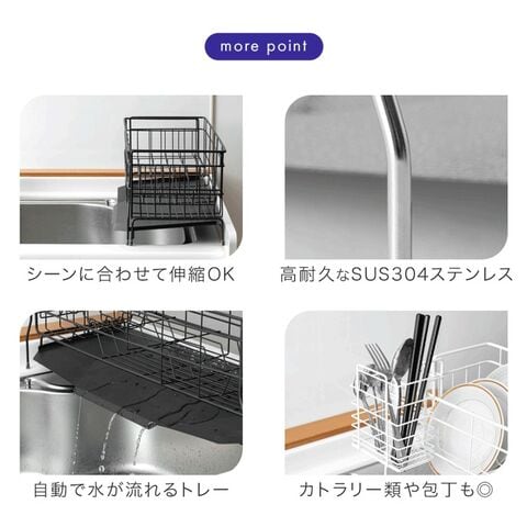 【即納】 【新発売プライス】エリア分けできる 水切りラック ステンレス 伸縮式 ワイド 大容量 調整可能 省スペース 食器水切り ラック 47cm 受け皿 トレー キッチン 台所 シンク上 食器 コップ おしゃれ 74100136〔ブラック〕
