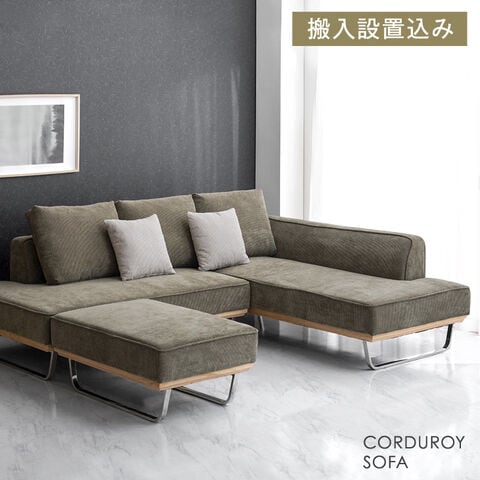 【搬入設置込】 ソファー 4人掛け コーデュロイ ソファ クッション2個付き L字 コーナー コーナーソファ コーナーソファー ソファセット カウチソファ 【超大型】 99901196〔ダークグリーン〕