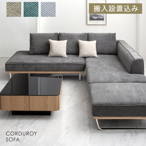 【搬入設置込】 ソファー 4人掛け コーデュロイ ソファ クッション2個付き L字 コーナー コーナーソファ コーナーソファー ソファセット カウチソファ 【超大型】 99901196〔グレー〕