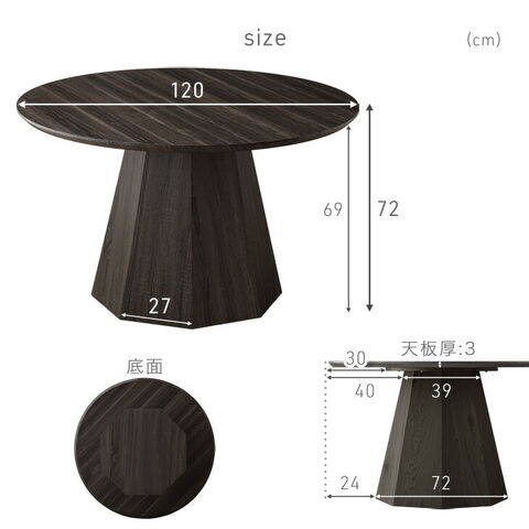 円形 120 ダイニングテーブル 単品 4人掛け ダイニング テーブル ラウンドテーブル 丸テーブル 円形テーブル 食卓 丸 丸形 円 幅120 4人 4人用 1本脚 木製 ブラック モダン 北欧 おしゃれ 【超大型】7480010900