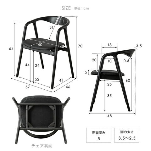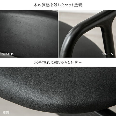 | フレーム:天然木(ラバーウッド無垢材) 座面:PVCレザー、ウレタン |