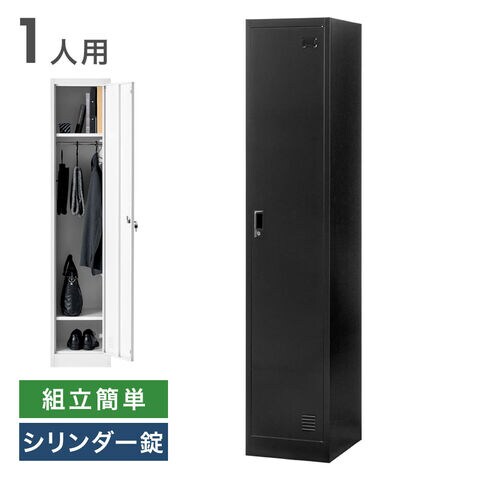【新発売プライス】 ロッカー 1人用 ★法人様限定★ スリム 1列1段 幅38 奥行45 高さ185 高耐久 シリンダー錠 ハンガー 更衣室 鍵付きロッカー 業務用 収納 スチール製 オフィス収納 省スペース 77400021〔ブラック〕