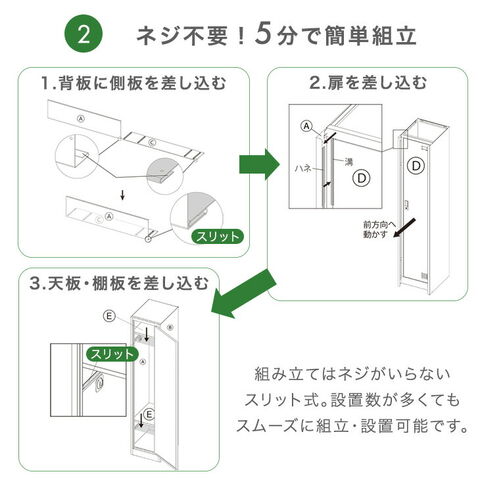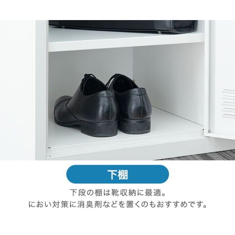 ・省スペースに設置できるスリムサイズ ・ネジがいらない簡単組み立て ・シリンダー錠付きでセキュリティ面も安心! ・衣類や小物をかけられるハンガーパイプ付き ・用途に合わせて分けられる収納 ┗帽子や小物が置ける上棚 ┗かばんやリュックが置ける中棚 ┗靴や消臭剤などが置ける下棚 ・空気がこもりにくい通気口付き ・扉を閉じる際の金属音を緩和する戸当たりクッション付き |