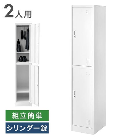 【新発売プライス】 ロッカー 2人用 ★法人様限定★ スリム 1列2段 幅38 奥行45 高さ185 高耐久 シリンダー錠 ハンガー 更衣室 鍵付きロッカー 業務用 収納 スチール製 オフィス収納 省スペース 77400022〔ホワイト〕