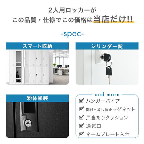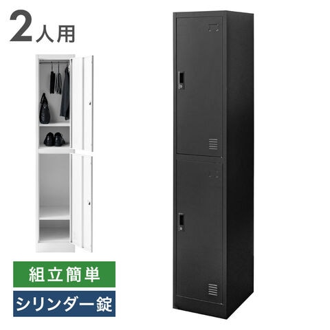 【新発売プライス】 ロッカー 2人用 ★法人様限定★ スリム 1列2段 幅38 奥行45 高さ185 高耐久 シリンダー錠 ハンガー 更衣室 鍵付きロッカー 業務用 収納 スチール製 オフィス収納 省スペース 77400022〔ブラック〕