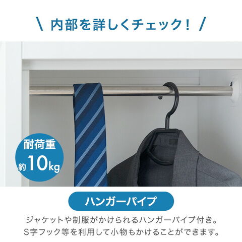 ・省スペースに設置できるスリムサイズ ・ネジがいらない簡単組み立て ・シリンダー錠付きでセキュリティ面も安心! ・衣類や小物をかけられるハンガーパイプ ・靴や消臭剤などが置ける下棚 ・空気がこもりにくい通気口 ・扉を閉じる際の金属音を緩和する戸当たりクッション付き |