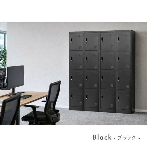 【新発売プライス】 ロッカー 4人用 ★法人様限定★ スリム 1列4段 幅38 奥行45 高さ185 高耐久 シリンダー錠 ハンガー 更衣室 鍵付きロッカー 業務用 収納 スチール製 オフィス収納 省スペース 77400024〔ブラック〕