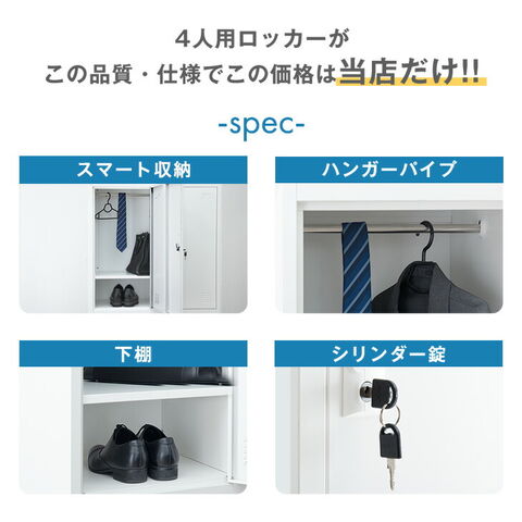 【新発売プライス】 ロッカー 4人用 ★法人様限定★ 幅608 スリム ワイド 高耐久 シリンダー錠 スチール 更衣室 鍵付きロッカー 鍵 業務用 スチールロッカー 2列2段 更衣室ロッカー オフィス収納 77400025〔ブラック〕【予約】2月上旬※2/10までに出荷予定