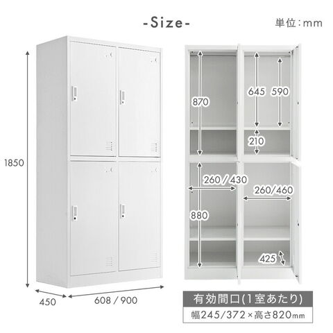 | サイズ | 【幅608mm】 外寸:幅608x奥行450x高さ1850mm 内寸:幅260x奥行425x高さ870mm 【幅900mm】 外寸:幅900x奥行450x高さ1850mm 内寸:幅430x奥行420x高さ870mm |