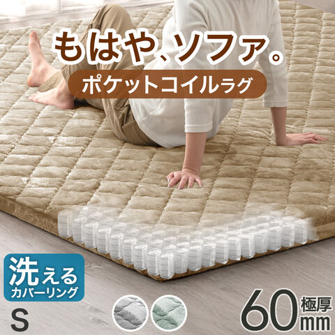 【即納】 もはや、ソファ。新提案! ポケットコイル入り 極厚60mm カバーリングラグ 130×185 ラグマット カーペット 絨毯 厚手 長方形 防音 抗菌 防臭 防ダニ オールシーズン おしゃれ 77500105〔ラテベージュ〕