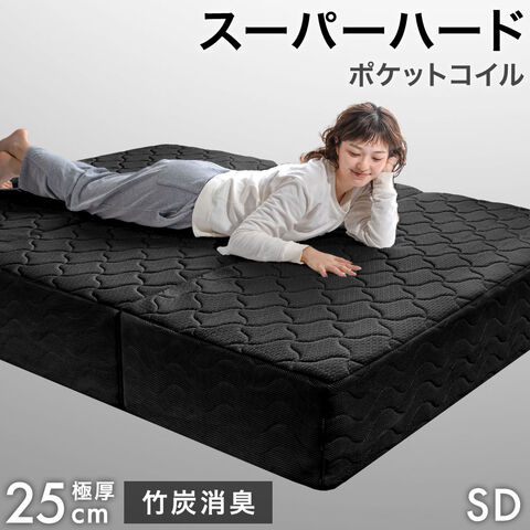 【即納】 【新発売プライス】 スーパーハード ポケットコイル セミダブル マットレス 三つ折り 極厚25cm かなり硬め 竹炭消臭 高反発 ウレタン 体圧分散 メッシュ 通気性 スプリングマットレス 圧縮 77501300〔ブラック〕