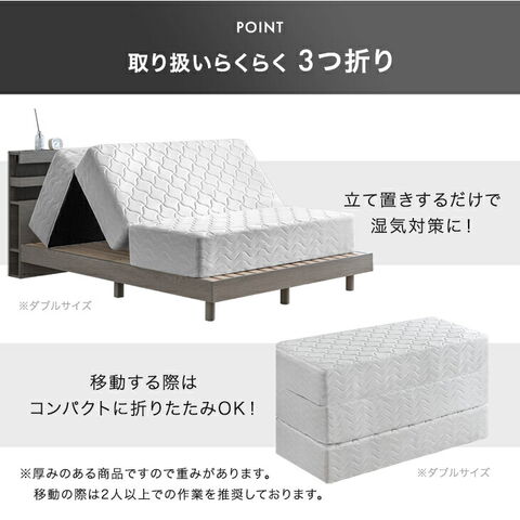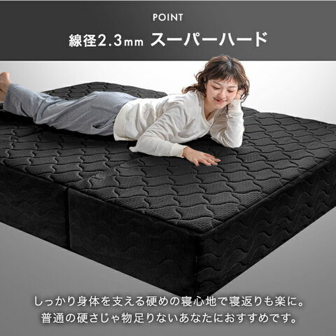 ・身体をガッチリ支えるスーパーハード 線径2.3mmポケットコイル ┗体格の良い方や男性におすすめ ・硬いだけじゃない!寝心地にこだわった多層構造 ┗贅沢な寝心地を生む極厚25cm ┗もっちり身体を包み込むウレタンフォーム ┗身体を点で支え、体圧分散性に優れたポケットコイル ・気になるニオイを消臭!ウレタンに竹炭成分を配合 ・取り扱いが楽な三つ折り ・柔らかな肌触りのニット生地 ・側面は通気性の良いメッシュ生地 ・生地は世界基準の安全性 エコテックス認証 ・ISO9001認定工場で生産した安心の品質 |