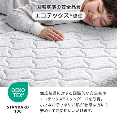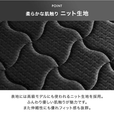 【表地】 ニット生地(ポリエステル100%) 1.5cm竹炭配合ウレタン(30N/密度20D) 【内部】 1.5cmウレタン(30N/密度20D) 22cmポケットコイルスプリング 不織布、ポリエステル綿 【側面】 ニット生地(ポリエステル100%) 0.5cm竹炭配合ウレタン(30N/密度20D) 【裏地】 ニット生地(ポリエステル100%) 0.5cm竹炭配合ウレタン(30N/密度20D) |