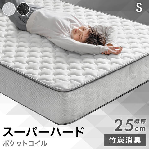 【即納】 【新発売プライス】 スーパーハード ポケットコイル シングルマットレス 極厚25cm 体圧分散 メッシュ 通気性 高反発 硬め 極厚 ウレタンベッド コイルマットレス スプリングマットレス 圧縮 77500124〔ホワイト〕
