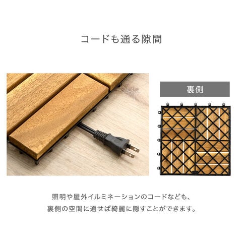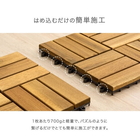 ・天然木を使用した温かみあるウッドデッキパネル ・高耐久でガーデニングにぴったりなアカシア材 ・繋げるだけの簡単施工でベランダやお庭をリフォーム ・ジョイント部が目立たない自然な仕上がり ・水が溜まりにくい背面穴 ・水で洗えてお手入れ楽々 |