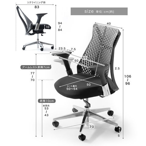 | 外寸:幅70×奥行70×高さ96?106cm 座面高:43?53cm |