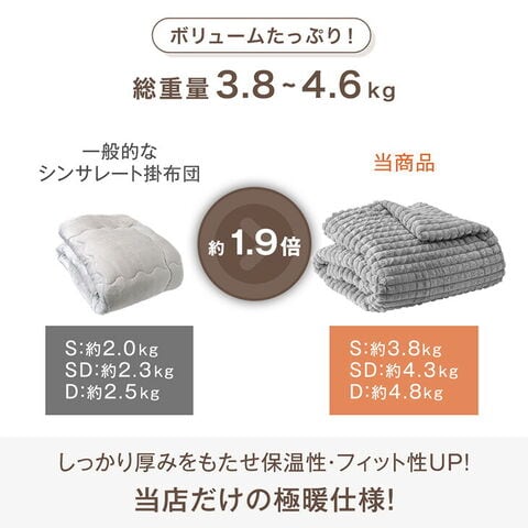 シングル:約3.8kg セミダブル:約4.3kg ダブル:約4.8kg |
