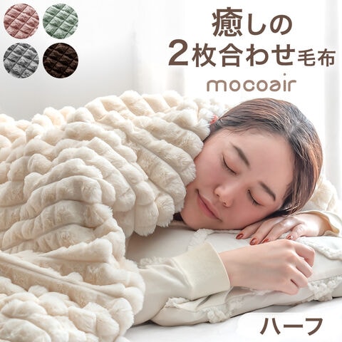 2枚合わせ 毛布 mocoair 洗える ブランケット ハーフ ケット 膝掛け 掛布団 モコモコ ボア あったか 暖かい 冬用 大判 おしゃれ かわいい 北欧 韓国風 80100162〔ミルクアイボリー〕