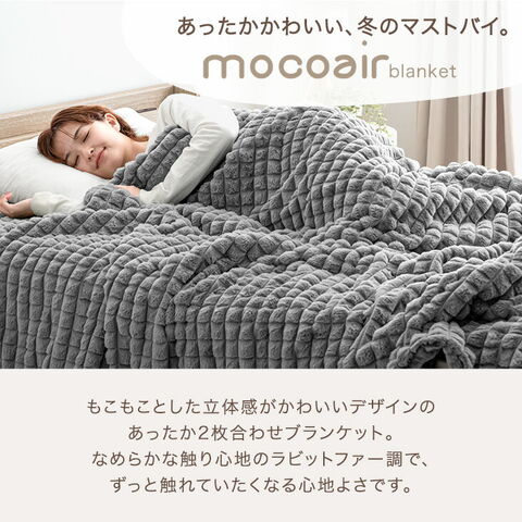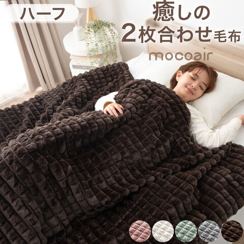 2枚合わせ 毛布 mocoair 洗える ブランケット ハーフ ケット 膝掛け 掛布団 モコモコ ボア あったか 暖かい 冬用 大判 おしゃれ かわいい 北欧 韓国風 80100162〔コーヒーブラウン〕
