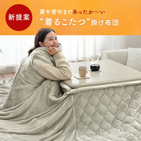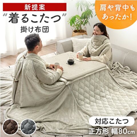 【即納】 新提案 “着るこたつ” 掛け布団 洗える 正方形 幅80 省エネ 抗菌 防臭 省スペース 薄掛け布団 フランネル こたつ掛布団 あったか エコ 節電対策 無地 おしゃれ 80100184〔ライトベージュ〕