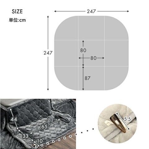 幅80×奥行80×長さ87cm ※対応こたつ天板サイズ:正方形 幅80cm |