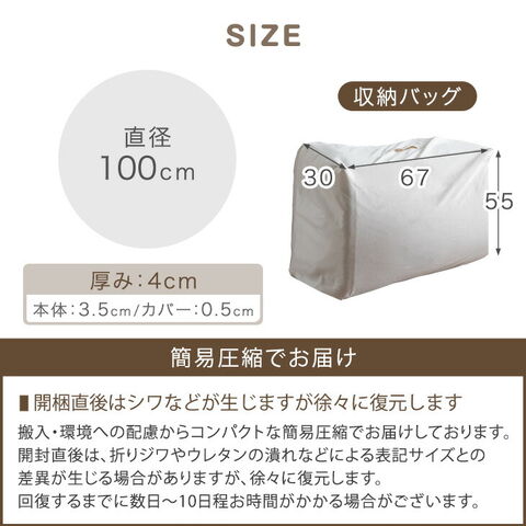 【即納】 全部洗える! 円形 ベビーマット 直径100 防水 収納バッグ お昼寝マット プレイマット サニーマット お昼寝マット ベビー 赤ちゃん マット 子供 キッズ 丸 お昼寝 厚手 軽量 防音 持ち運び 床暖房対応 おしゃれ 80101144