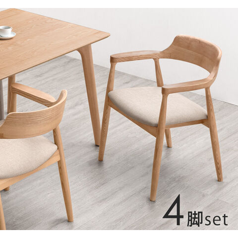 【4脚セット】 天然木 アッシュ ダイニングチェア 完成品 無垢材 ダイニング リビングチェア リビングチェアー ダイニングチェアー チェア アームチェア イス 椅子 チェア 80500111〔ナチュラル(布座面:ベージュ)〕【予約】5月上旬※5/10までに出荷予定